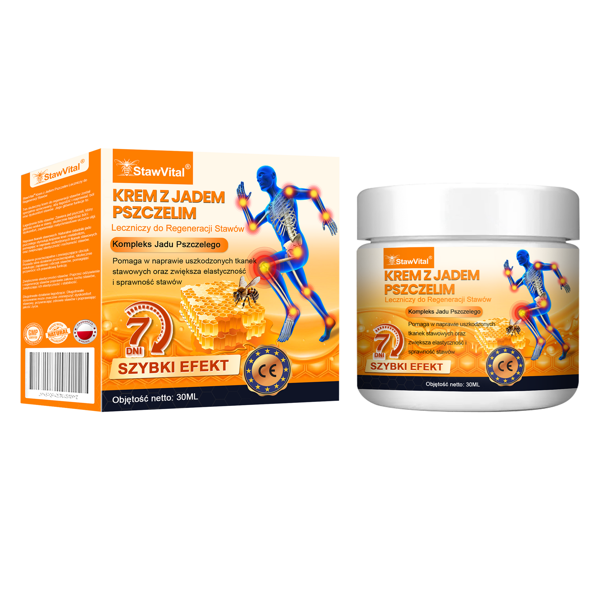 "Jako lekarz ortopeda, szczerze polecam 𝑺𝒕𝒂𝒘𝑽𝒊𝒕𝒂𝒍® 𝑲𝒓𝒆𝒎 𝒛 𝑱𝒂𝒅𝒆𝒎 𝑷𝒔𝒛𝒄𝒛𝒆𝒍𝒊𝒎 𝑳𝒆𝒄𝒛𝒏𝒊𝒄𝒛𝒚 𝒅𝒐 𝑹𝒆𝒈𝒆𝒏𝒆𝒓𝒂𝒄𝒋𝒊 𝑺𝒕𝒂𝒘ó𝒘 pacjentom cierpiącym na chorobę zwyrodnieniową stawów, reumatoidalne zapalenie stawów oraz inne zapalne schorzenia kości i stawów. Krem zawiera toksynę botulinową, ekstrakt z jadu pszczelego, glukozaminę, chondroitynę i inne wysokoaktywne składniki, które zmniejszają stany zapalne, odżywiają stawy oraz poprawiają ruchomość. Wspomaga odbudowę i regenerację chrząstki oraz tkanki kostnej, łagodząc ból i sztywność, jednocześnie eliminując szkodliwe kryształy mogące odkładać się w stawach, co finalnie przywraca prawidłowe funkcjonowanie stawów."
