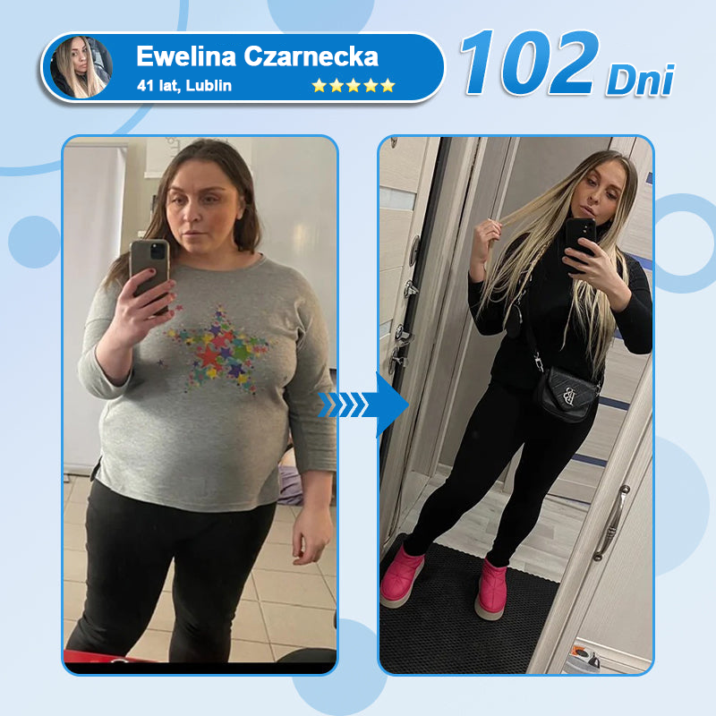 Tak jak się spodziewałam, w ciągu pierwszych dwóch tygodni nie doświadczyłam żadnego dyskomfortu.Wyniki były bardzo stabilne i stopniowe.Pomogło mi to powoli kontrolować apetyt, zauważyłam, że mój metabolizm znacznie się przyspieszył, trawienie poprawiło się, a uczucie sytości trwało dłużej.Po około 3 pudełkach, w ciągu 9 tygodni, schudłam z 88 do 52 kilogramów.Rezultaty były jeszcze szybsze niż te, które czytałam o tradycyjnych zastrzykach!To dlatego, że ZdrowyStyl® jest skuteczniejszy i łatwiej jest trzymać się planu leczenia.